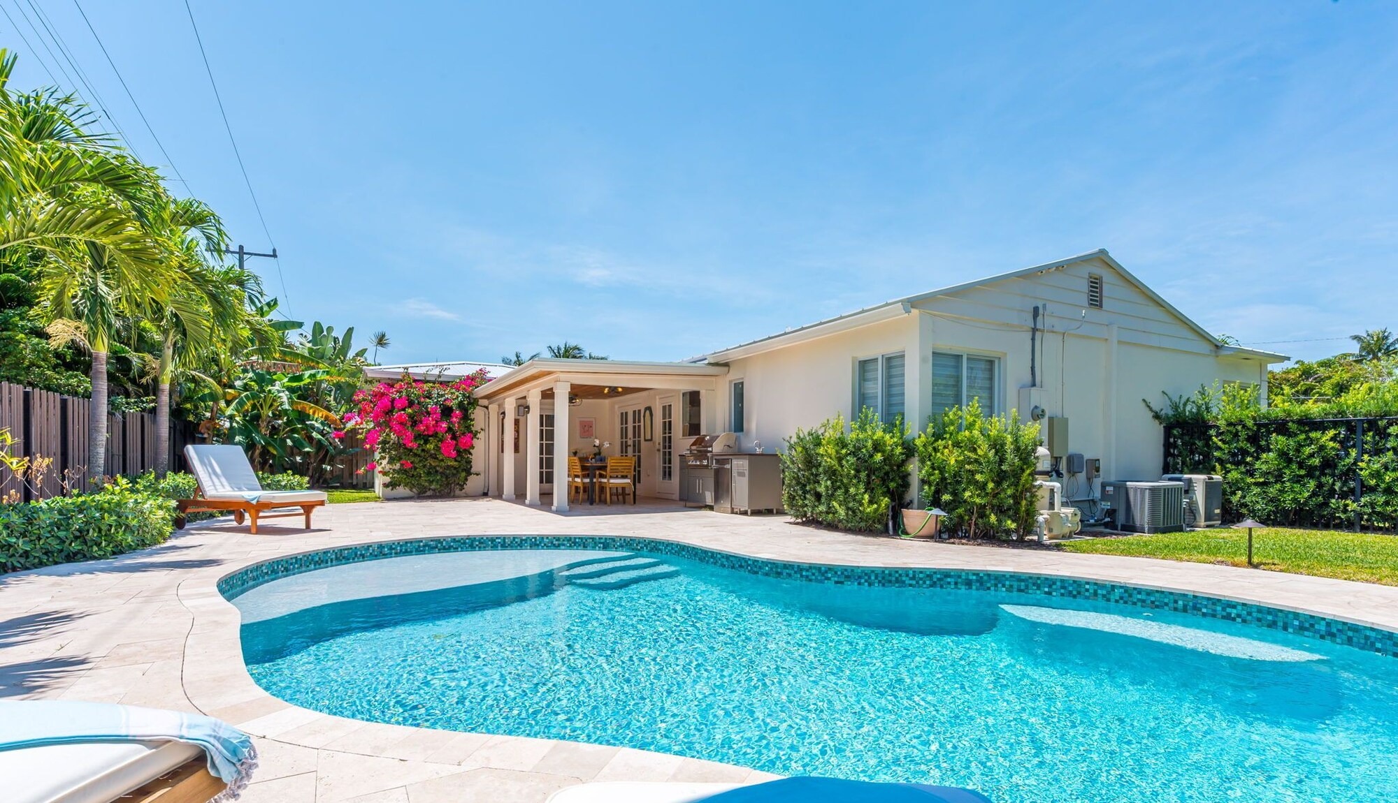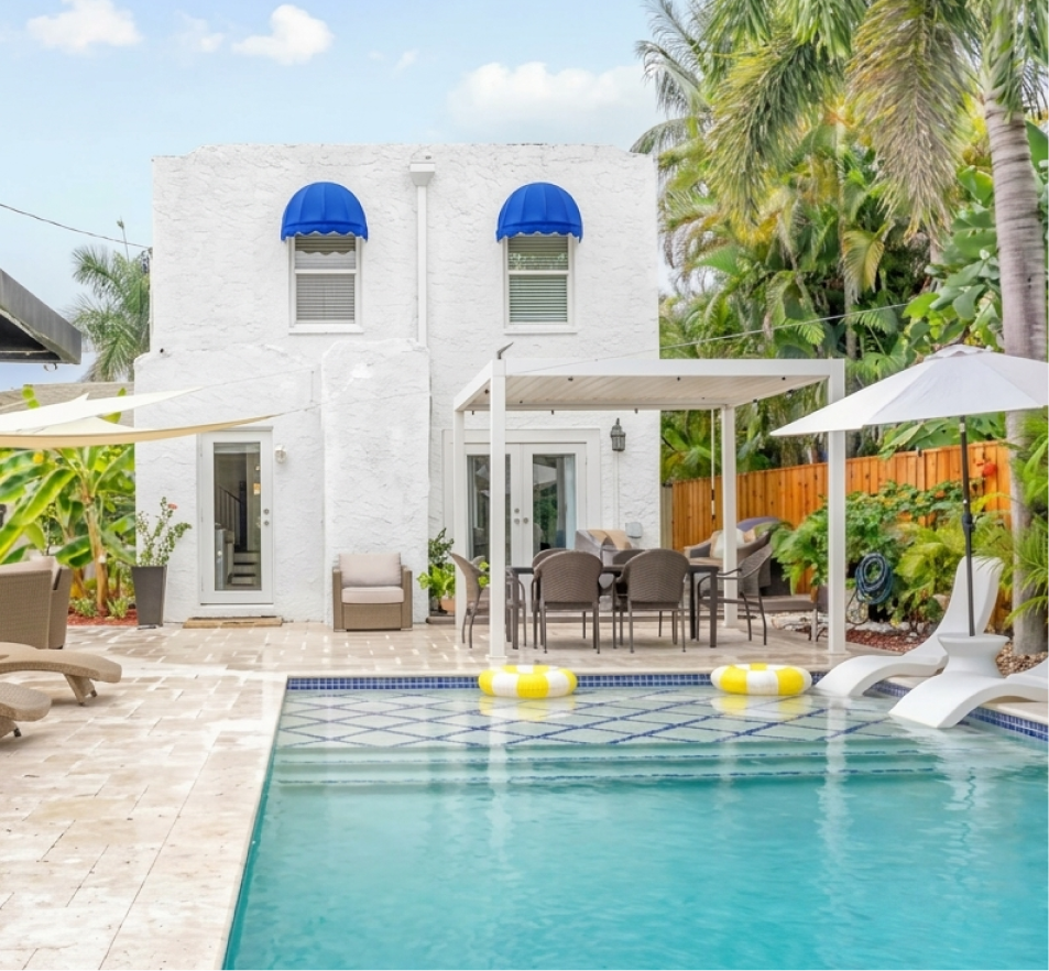 The Backyard 0asis Steals the Show — enjoy the newly renovated outdoor space with saltwater pool, waterfall, 8” tanning ledge, covered dining and comfortable seating, Perfect for entertaining. This 3BR/2.5BA coastal designed retreat blends historic charm with modern ease – conveniently located just minutes from downtown West Palm,